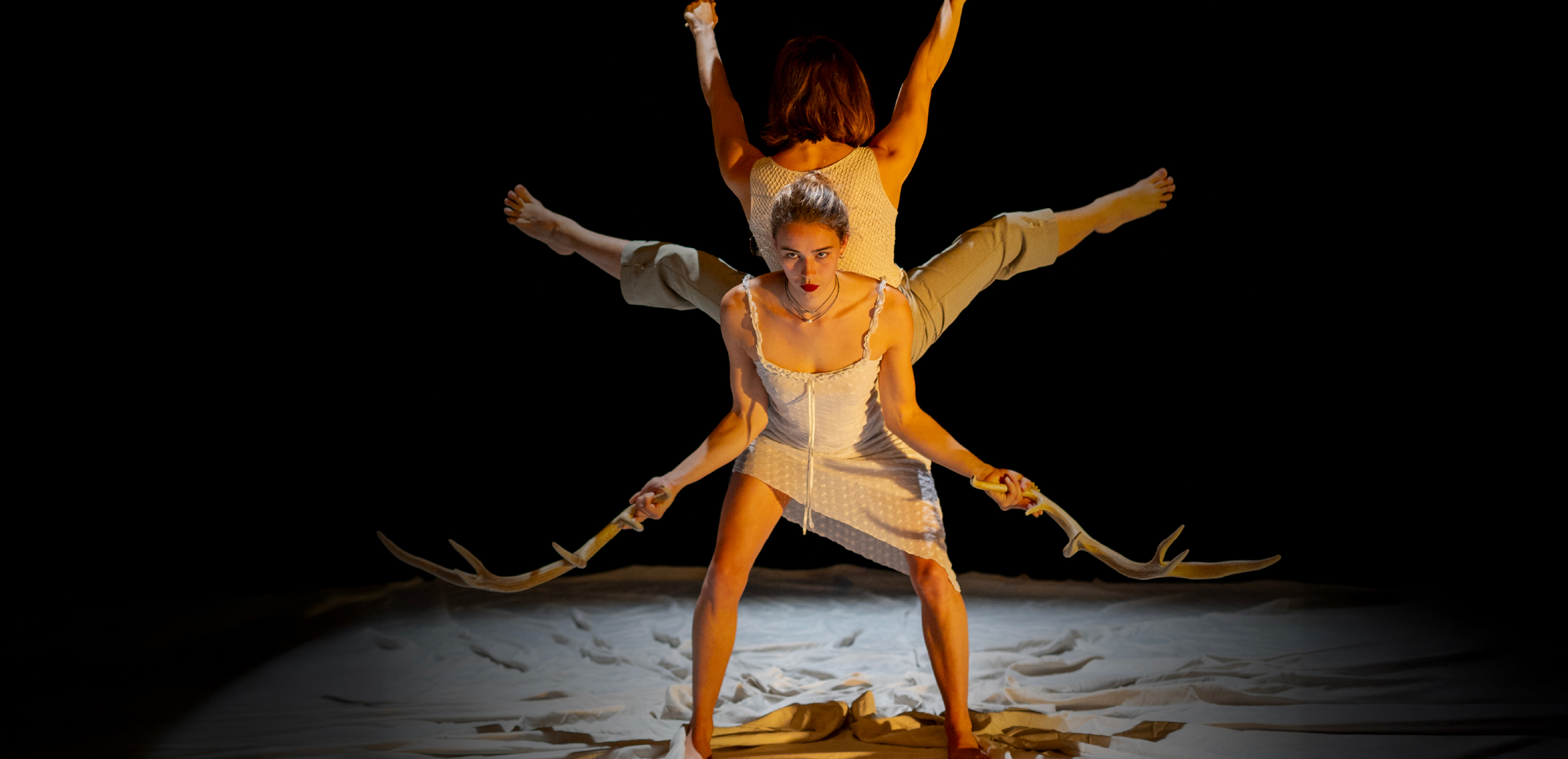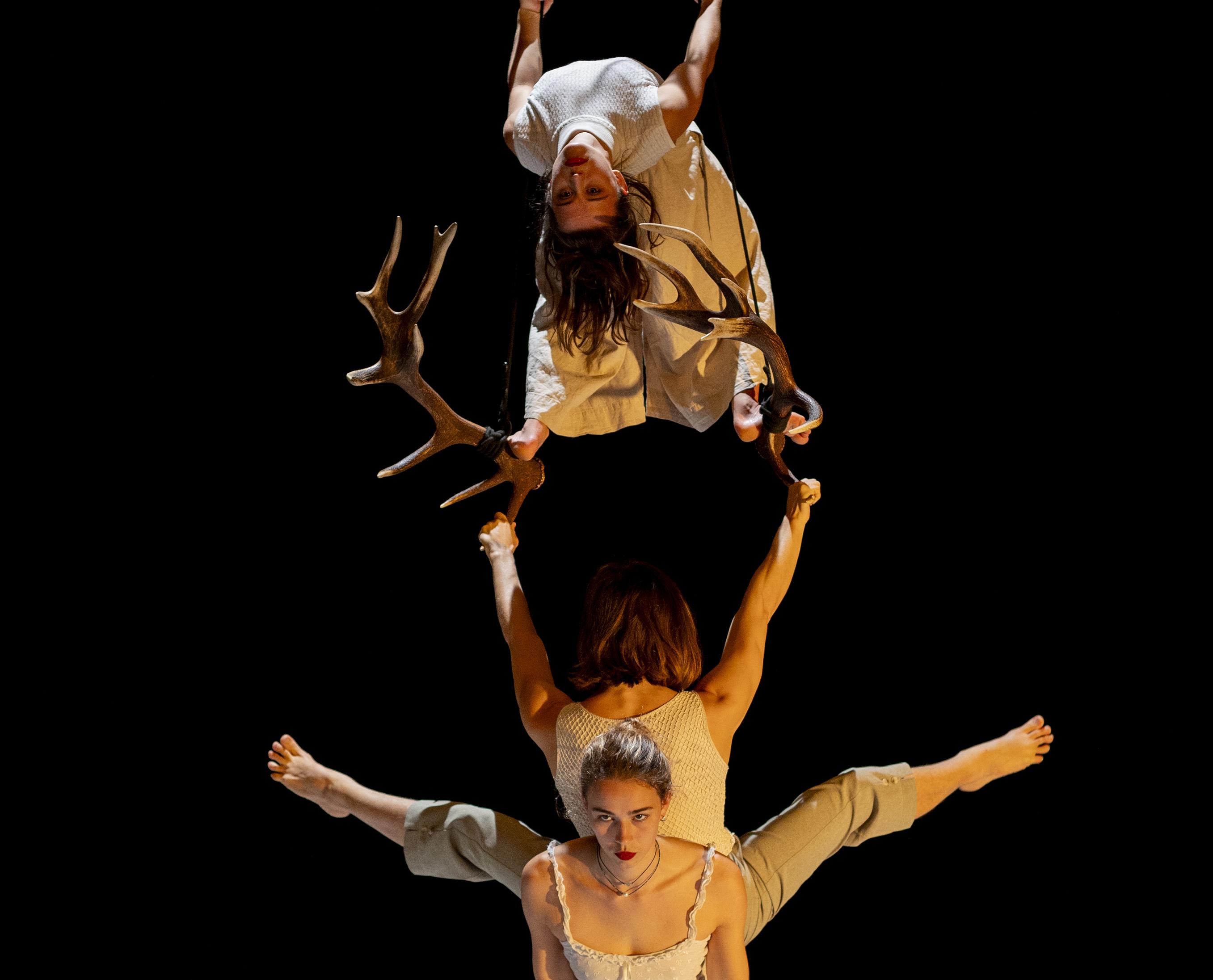Trois acrobates féminines donnent corps à la figure du cerf, animal mythique, puissant et insaisissable. À travers ses bois transformés en agrès de cirque, elles explorent les métamorphoses du vivant, les mutations du corps et les identités en mouvement. Porté par la danse et l’acrobatie, Faune interroge les frontières poreuses entre instinct ancestral et monde moderne et propose un rituel sensible, où le sauvage devient langage et le corps, lieu de renaissance.