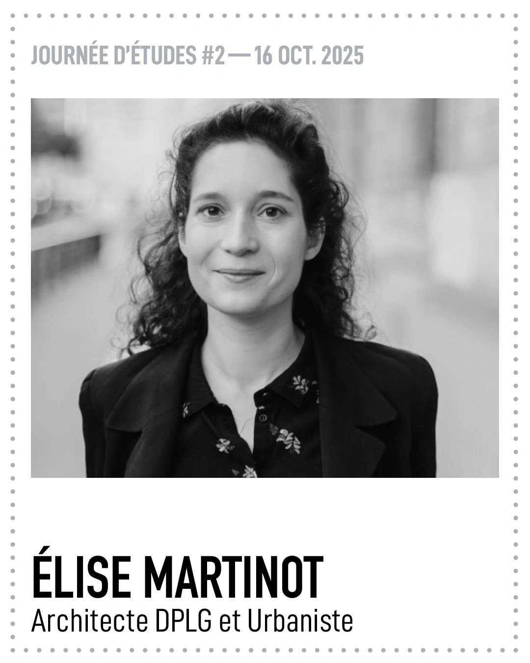 ![]() | Elise Martinot est architecte urbaniste. Elle est chargée de la communication et des partenariats au CAUE92 depuis 2024. Ses missions transversales en collaboration avec tous les membres de l’équipe, architectes et urbanistes sont un appui à l’organisation des actions culturelles, de formation et de sensibilisation. Formée à ENSAPB et à l’École Urbaine de Sciences po, elle a été architecte dans des agences tels qu’Encore Heureux, XTU et Atelier Christian de Portzamparc. Ensuite urbaniste à l’a’urba, elle mène des projets expérimentaux en phase pré-opérationnel dans la Métropole de Bordeaux. La diffusion de la culture architecturale parcours sa pratique et elle développe des outils tels que des ateliers de sensibilisation et un podcast « Les murs et les oreilles », avec la Cité de l’Architecture et du Patrimoine. | |