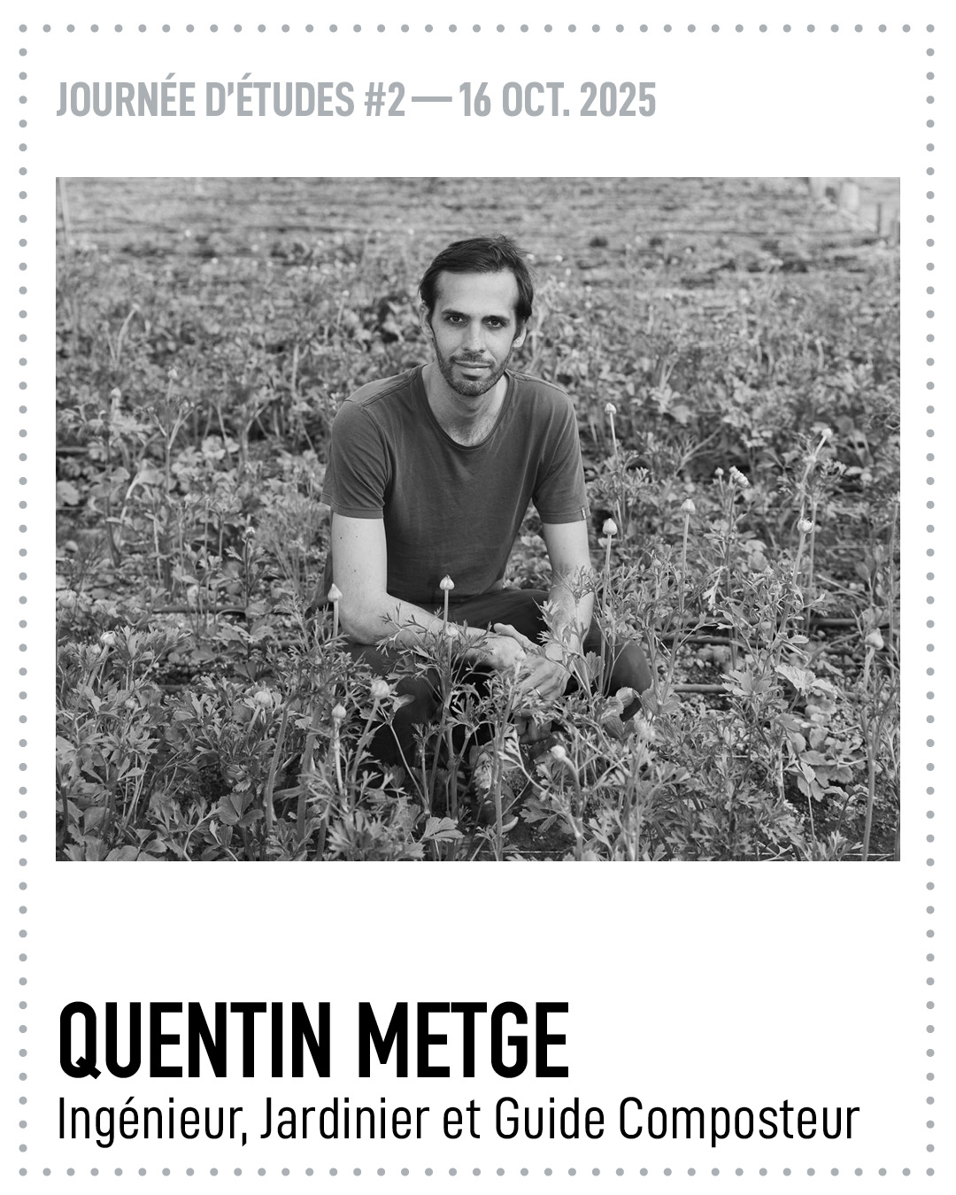 ![]() | Ingénieur de formation, Quentin Metge a d’abord travaillé dans le secteur de l’énergie et la construction de centrales électriques avant de se tourner vers l’agroécologie et le vivant. Après plusieurs expériences au sein de structures liées à l’agriculture de proximité, il rejoint en 2022 l’association Halage où il coordonne le site de LIL’Ô sur l’Ile Saint Denis : une ancienne friche industrielle de 3,6 hectares en reconversion écologique et solidaire. Il est aujourd'hui, chef de projet agricole avec l’association le Pré – Parc Rural Expérimental à Nanterre. Animateur sur les enjeux d’écologie, il développe aussi des ateliers pédagogiques et de sensibilisation autour des sols, du compost ou du végétal. | |